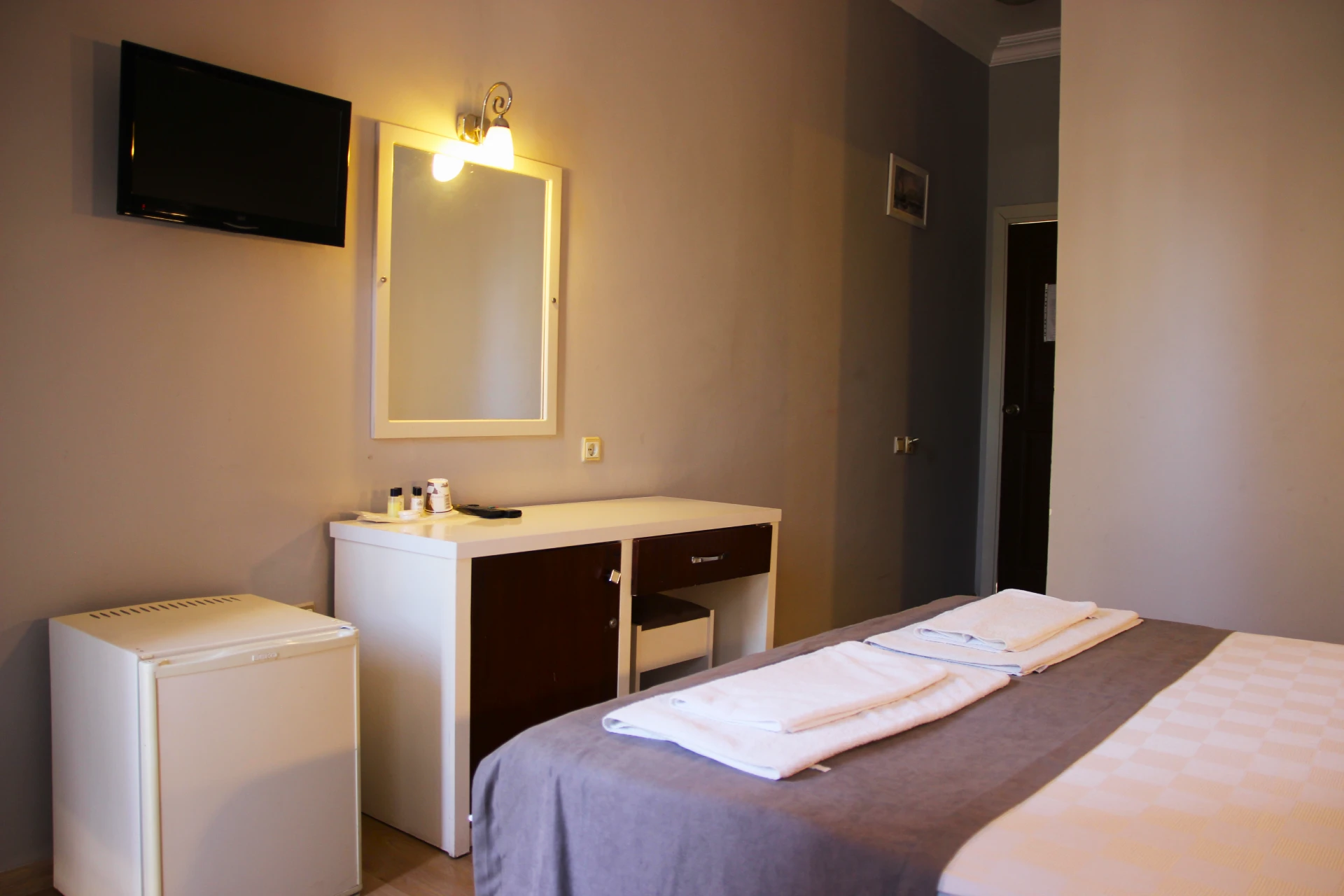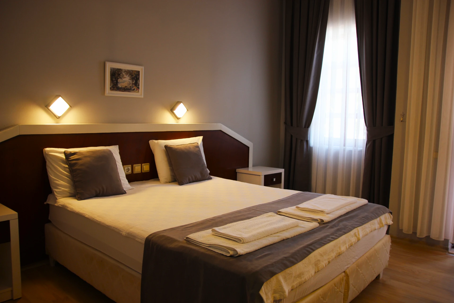 Our Double Rooms at Güneş Hotel provide a comfortable and welcoming stay for couples or friends. With modern décor and a peaceful atmosphere, your holiday will be both relaxing and enjoyable. Each room features split air conditioning, TV, minibar, direct phone line, and carpeted flooring. Being close to the beach and city center, you can relax while easily exploring the beauty of Fethiye.